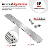 • The LP230 latch protector is manufactured using heavy 12 gauge plate steel for maximum security. Zinc plated with brushed finish. 1-3/4" Wide x 10" High
