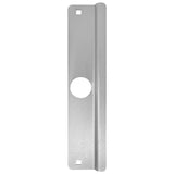 Model fits Adams-Rite type Locks. Installs on Aluminum Entrance Doors. 1-1/2" cylinder hole fits over the cylinder. Best fit is with 1-1/8" backset locks, will also work with 31/32" and 1-1/2" backsets by horizontal movment of latch guard. SPECIFICATIONS: Plate: 12 gauge steel, .105" thick. Two square holes in plate. Bolts: Two carriage bolts 5/16-18 x 1-1/2" long with special fasteners (SF710). Finish: Zinc plated with brushed finish. Latch-Gard products are made in the U.S.A. using high quality materials.