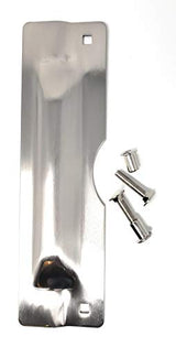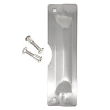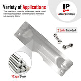 Details: The LP 212 latch protector is manufactured using heavy 12 gauge plate steel for maximum security for your outward swinging commercial door. Zinc plated with brushed finish. 3" Wide x 11" High Similar to the popular LP 210 latch protector but without the Door Jamb Rivet Tamper Resistant, Special Fasteners which allow for a quick and easy, flush inside Installation. This prevents door weatherstrip from sealing incorrectly or clothing being snagged Latch Protector steel plates completely covers latch area so latch bolt can't be retracted Reversible for right or left opening Steel or Wood Door. Installation requires drilling only two holes Intended for 1-3/4" thick doors, Outward Swinging Doors with any Lock up to 3-1/2" diameter Rose or Escutcheon with 2-3/4" backset Intended for use with outward Swinging Exterior Commercial Steel or Wood Doors with Cylindrical Lock and 3-1/2" diameter Rose SPECIFICATIONS: Plate: 12 gauge steel, .105" thick. Two square holes in plate. Bolts: Two carriage bolts 5/16-18 x 1-1/2" long with special fasteners. Finish: Zinc plated with brushed finish. Item is packaged in a clear poly bag